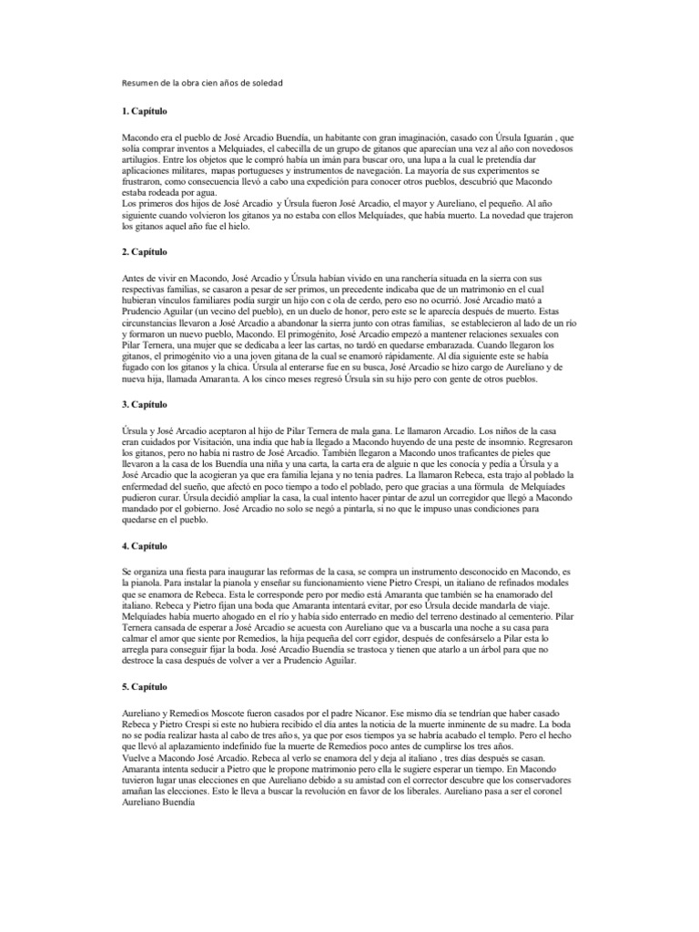 Pdf Superior 100 Cien Anos De Soledad Resumen Por Capitulos 1library Co